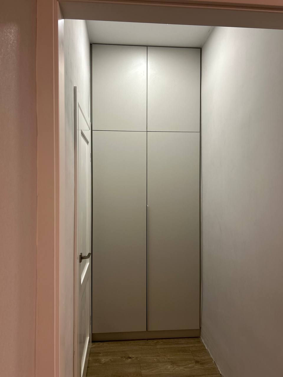 Заказывали встроенный шкаф-купе от стены до стены. Боялись, что будут щели и неровности. Но мастера молодцы! Подогнали все идеально, получился монолитный и стильный элемент комнаты. Использовали каждый сантиметр пространства.